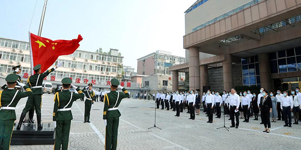 金秋时节,惠风和畅。伴随着雄壮的《义勇军进行曲》,鲜艳的五星红旗冉冉升起,在场人员庄严肃立,面向国旗行注目礼,齐声高唱国歌,为伟大祖国送上深情祝福。